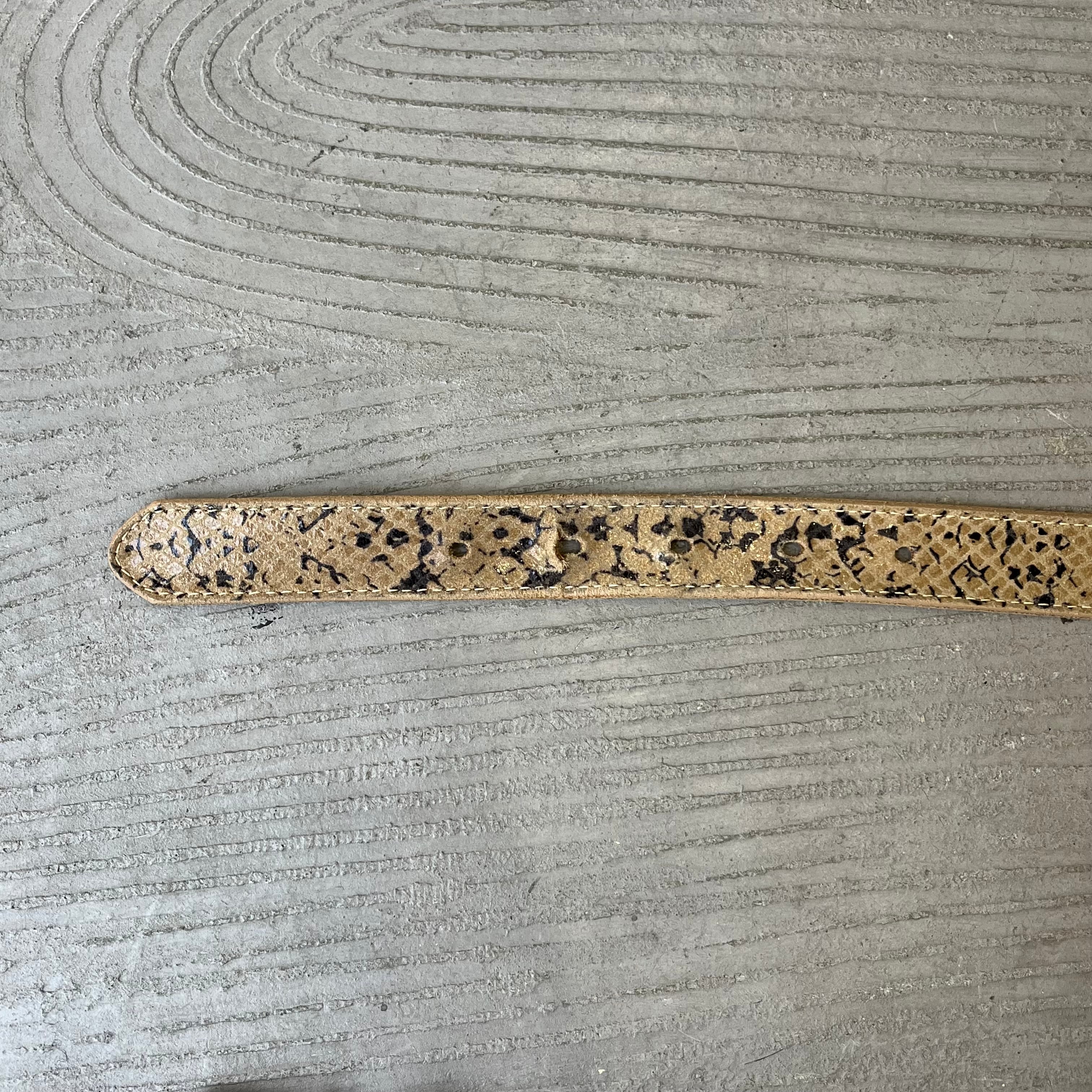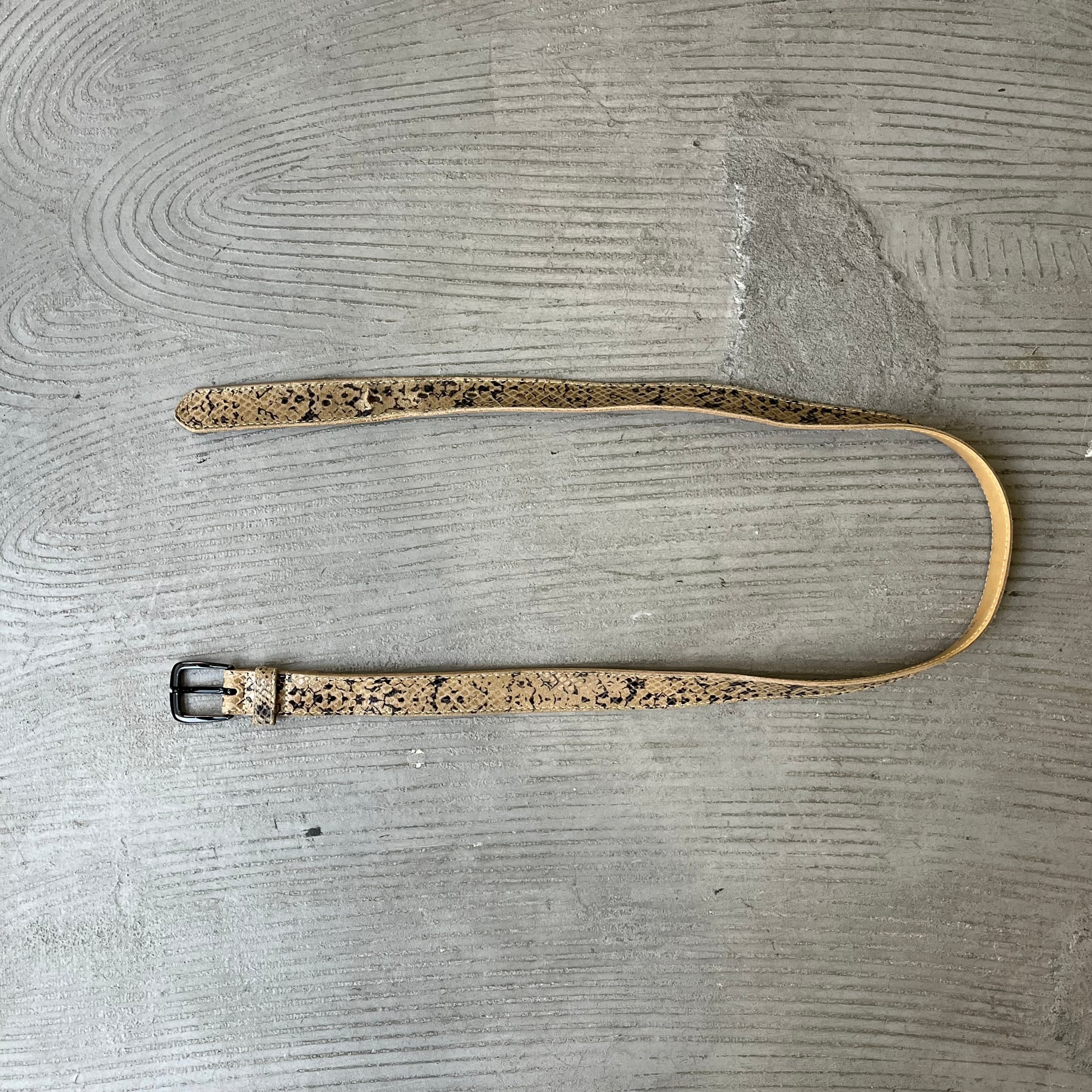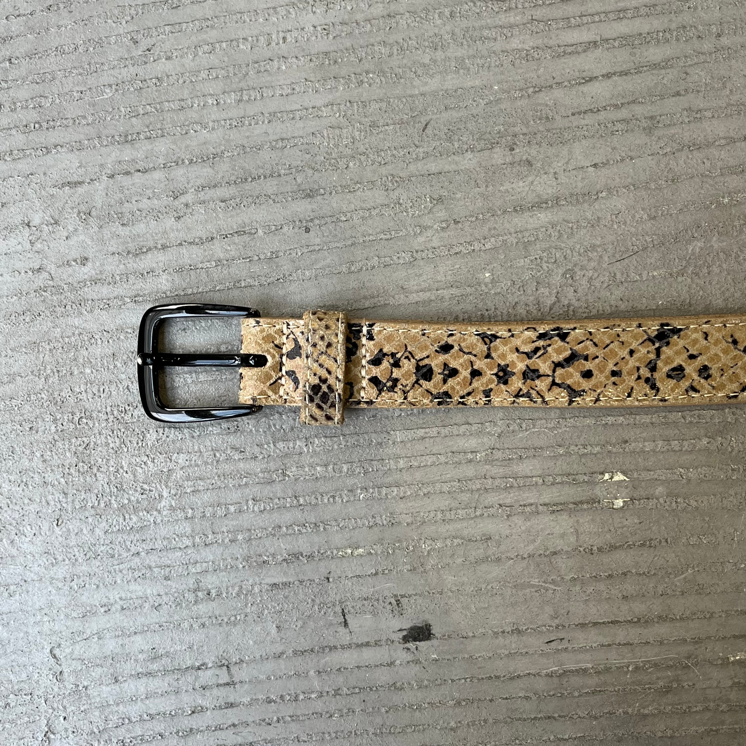 Measurement : 幅2.5cm 全長97.5cm バックルの先からベルト穴まで最小78-最大89 (平置き寸法)