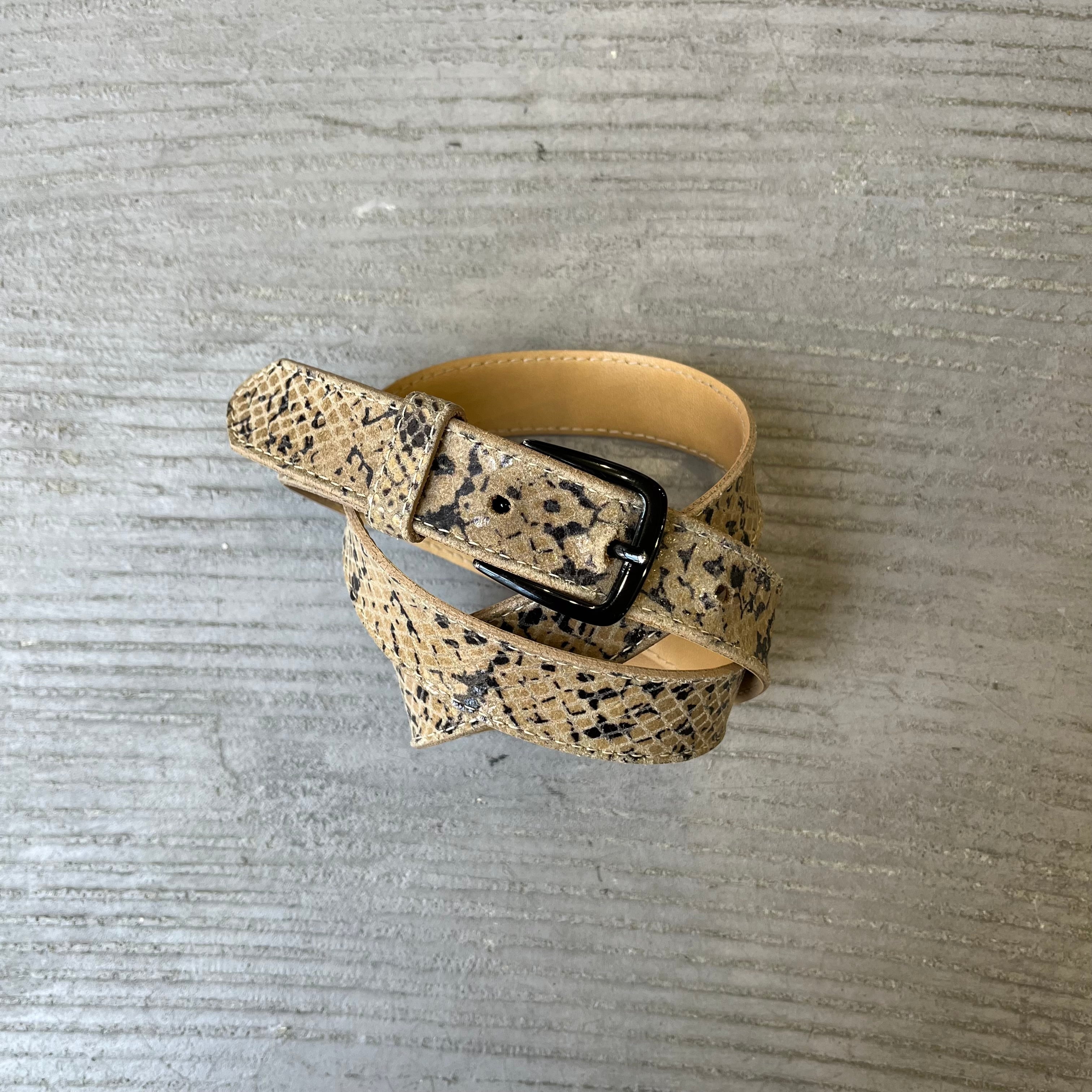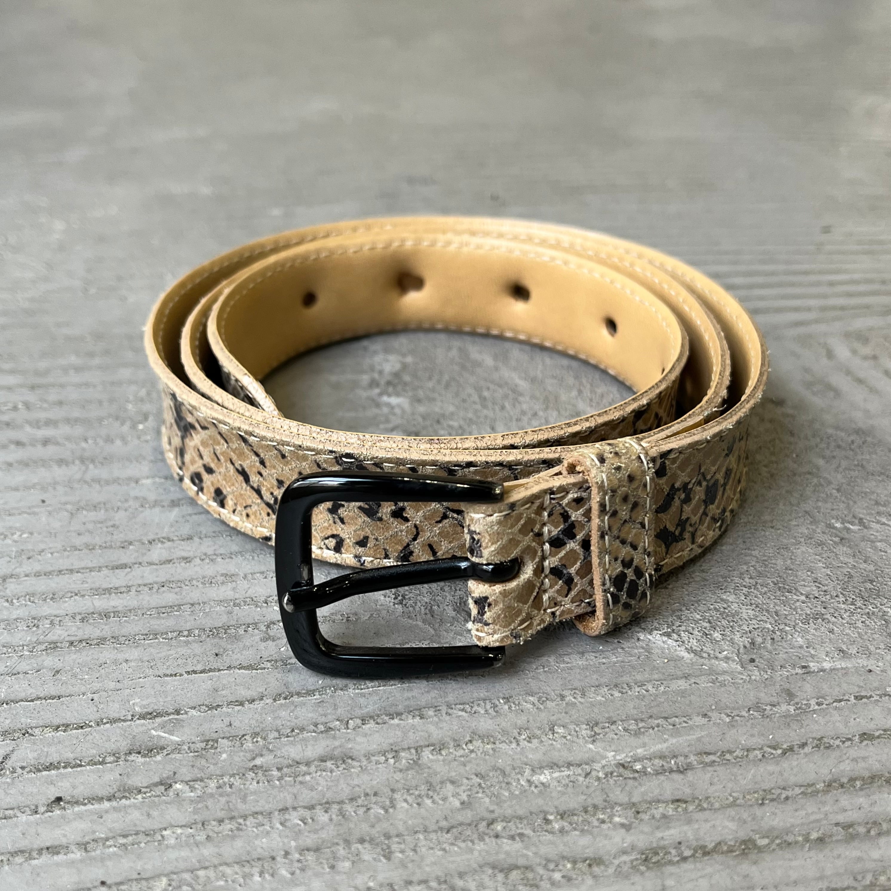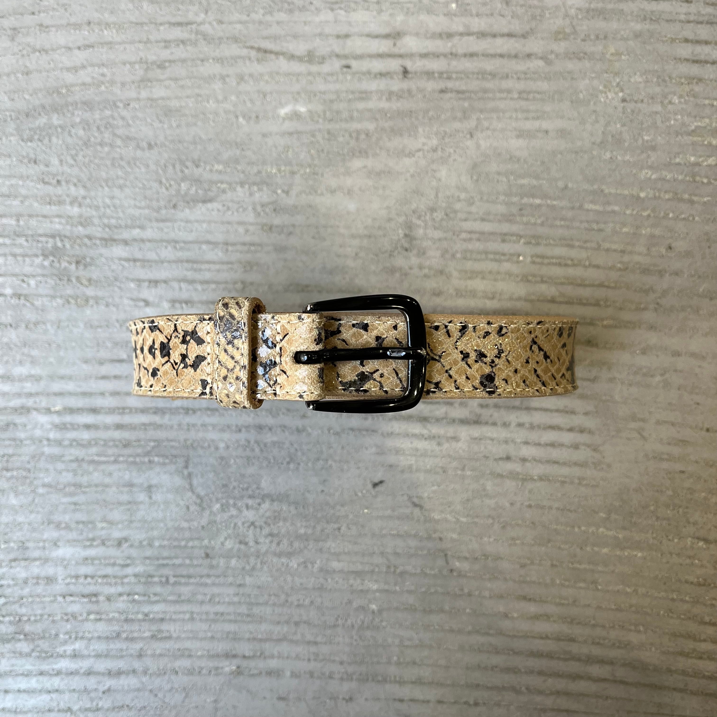 Measurement : 幅2.5cm 全長97.5cm バックルの先からベルト穴まで最小78-最大89 (平置き寸法)